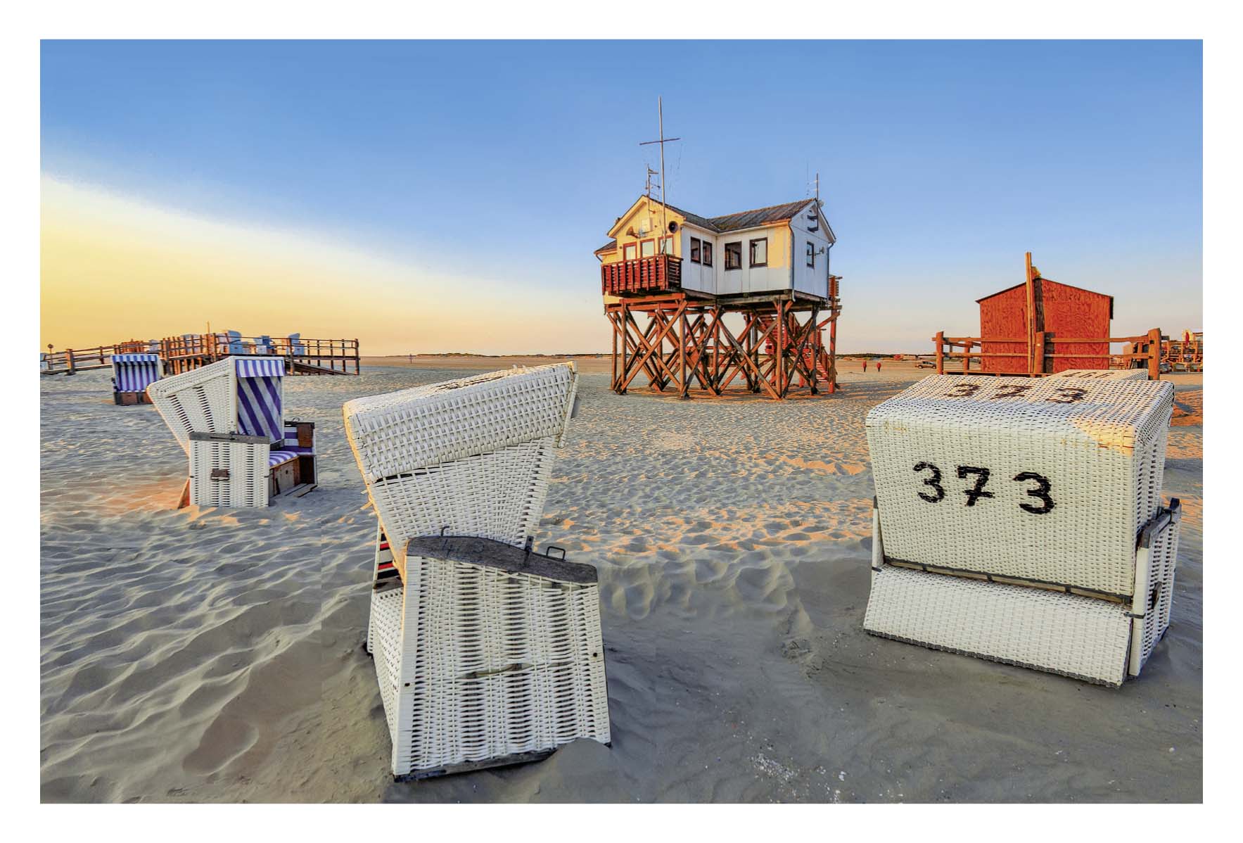 Tags: Pfahlbauten, St. Peter-Ording, Strandkörbe